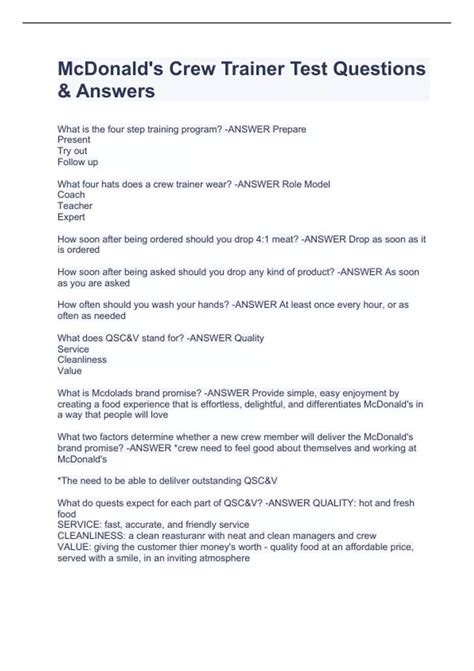 Download answers to mcdonalds crew trainer test Paperback